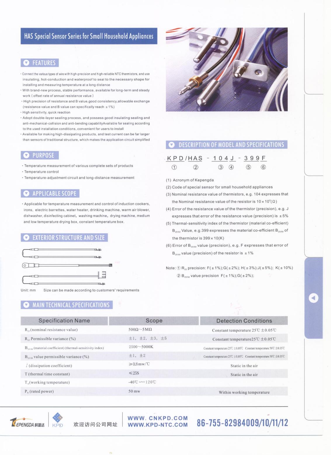 Product Feature  GF Potting-type Temperature Sensor