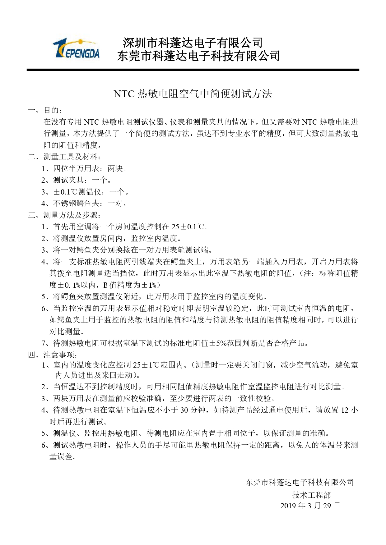 NTC熱敏電阻空氣中簡便測試方法